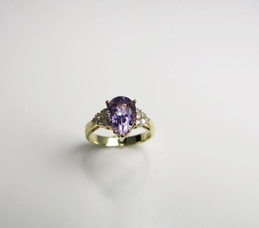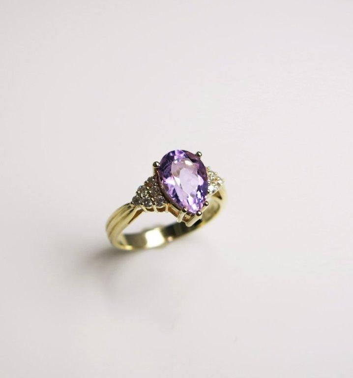 Amethyst weight approx 4.00 carats with 12 accent diamonds set in 14 karat yellow gold.