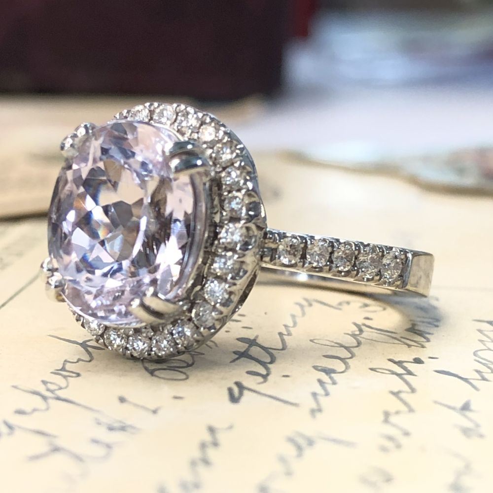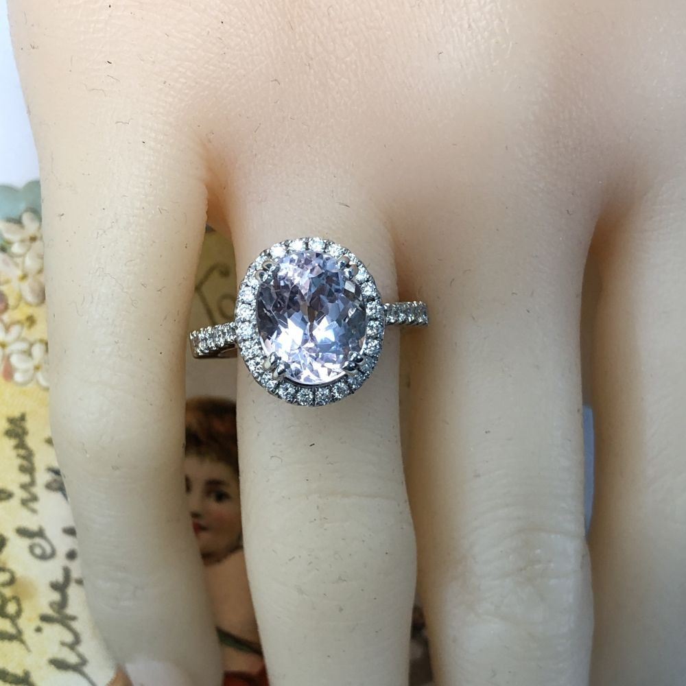 DESCRIPTION DETAIL: Genuine Kunzite and Earth-Mined Diamond Ring