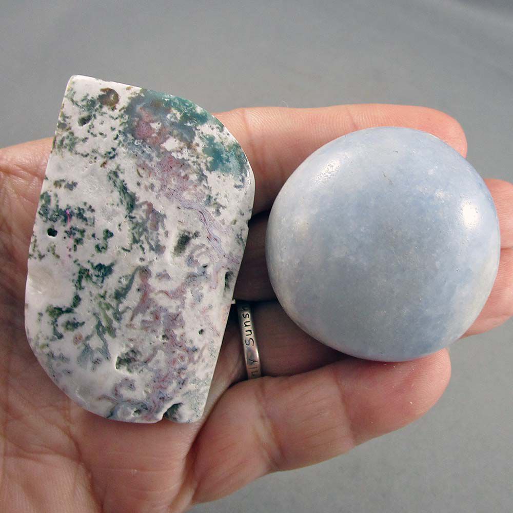 Blue Calcite Palm Stone 1.5" x .75" 66 grams
