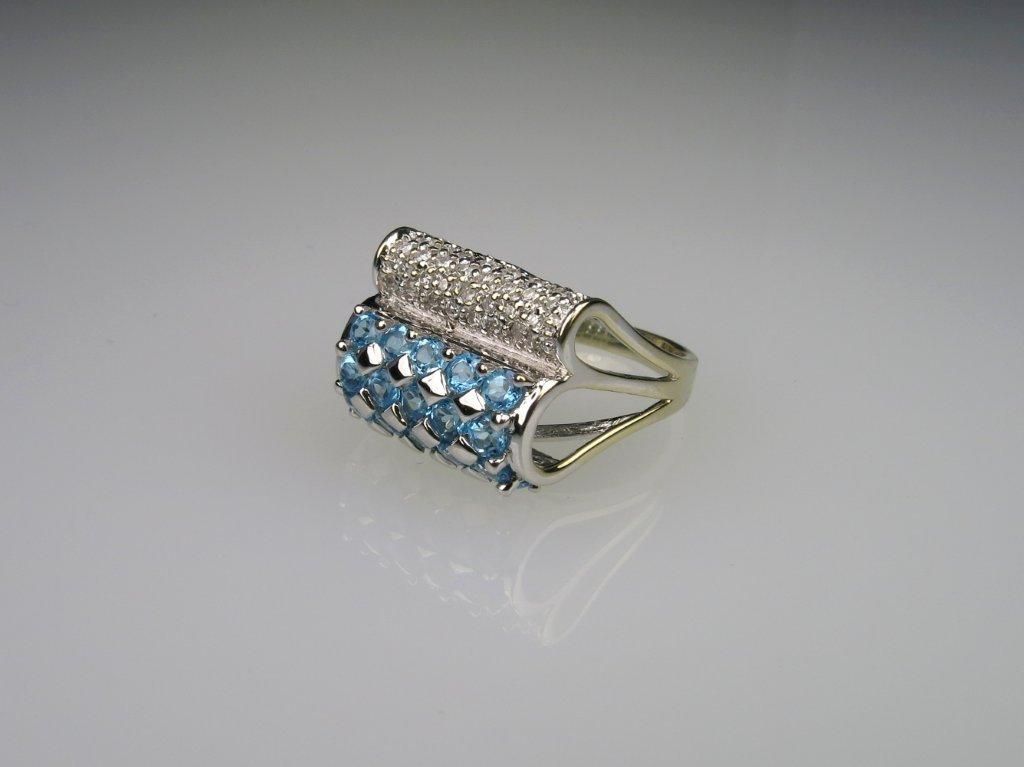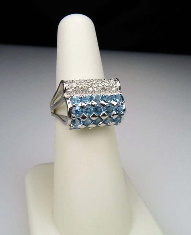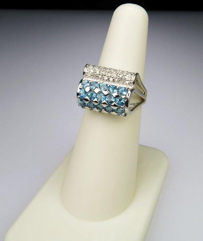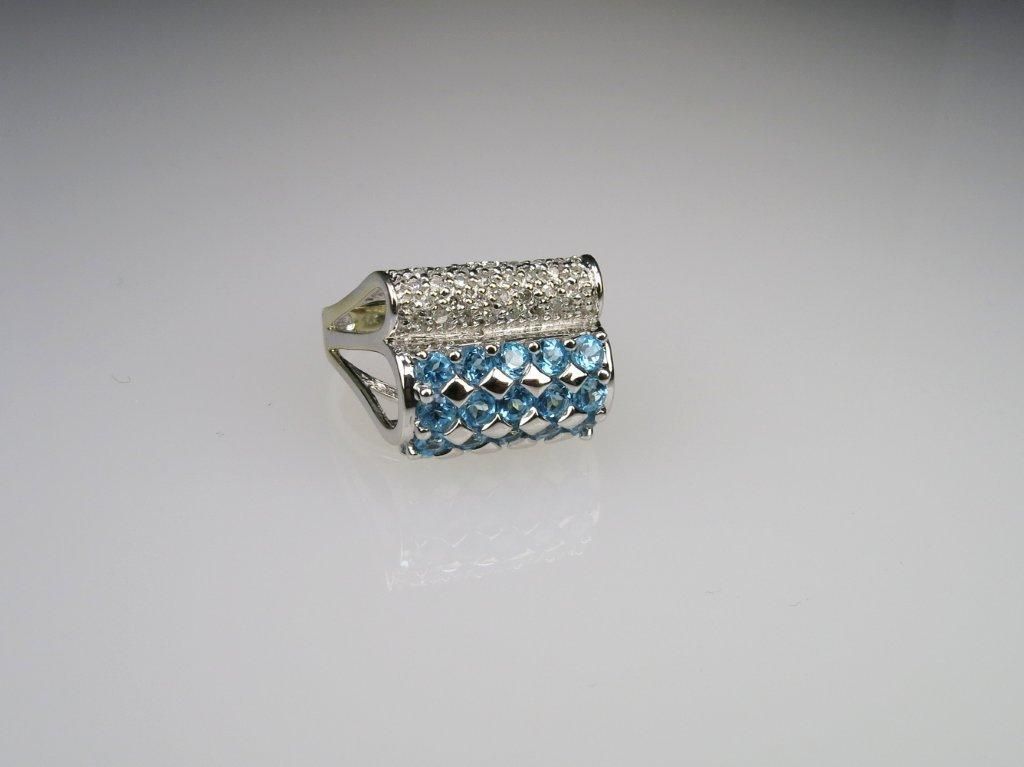 With 20 round cut topaz weight approx. 2.00 carats and 38 round cut pave set diamonds set in 14 karat white gold. Labor Intensive.