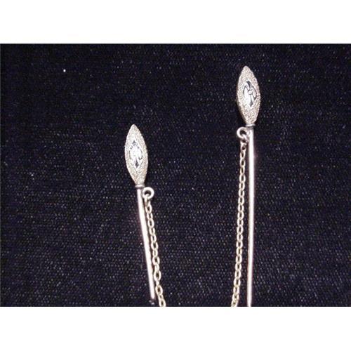 Wonderful Victorian Circa 1880 Yellow Gold and Black Enamel Tracery Pair of Attached Stickpins in wonderful condition. Great old Set. Wonderful condition. Reverse - plain. Front - Engraved with black enamel tracery details. Great old piece!!