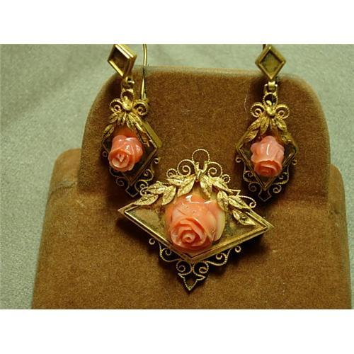 <tr><td>Title:Pretty Victorian Set - Coral 14Kt Yellow Gold</td></tr>