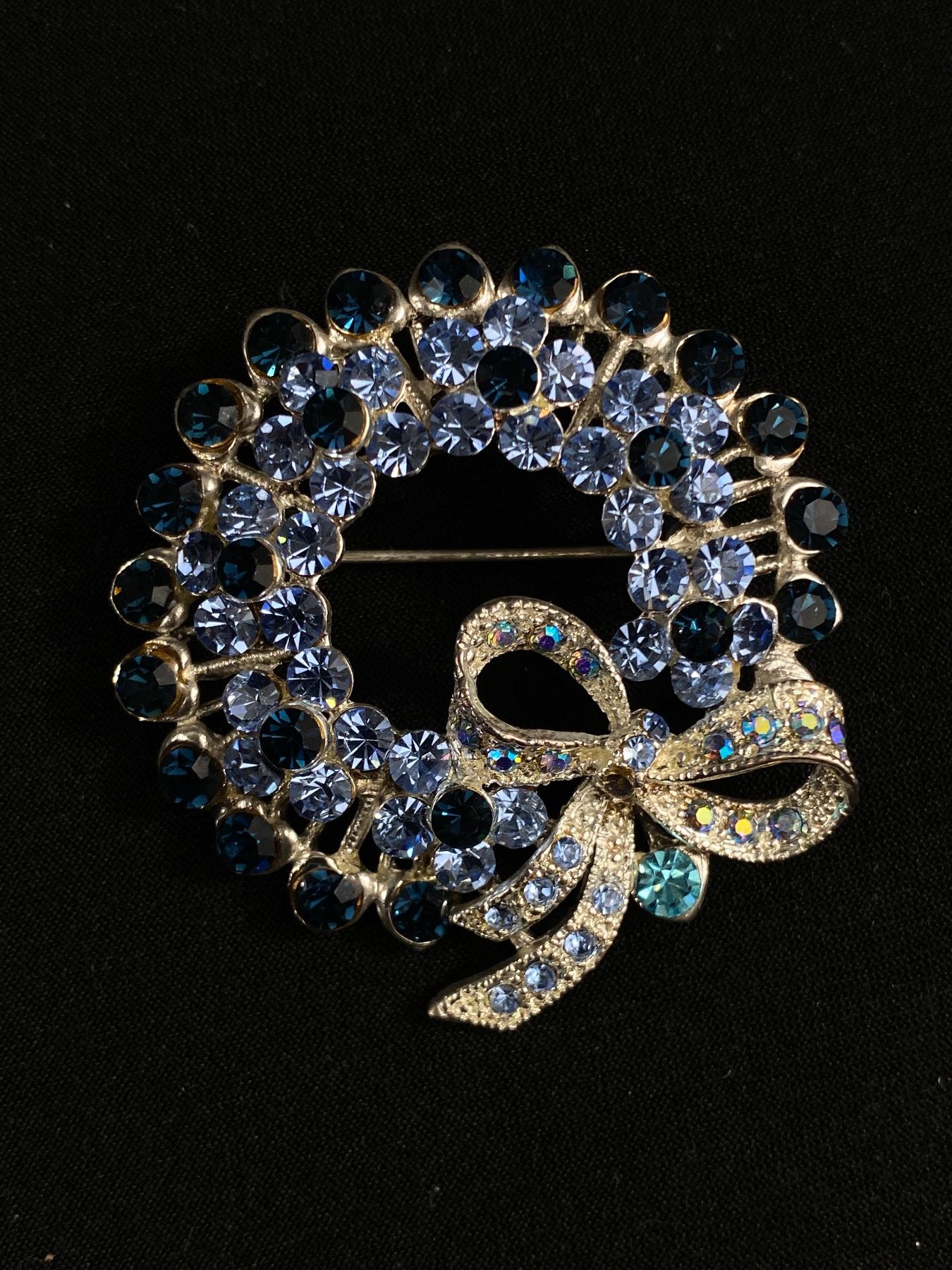 Pretty Vintage Rhinestone Wreath & Bow Brooch