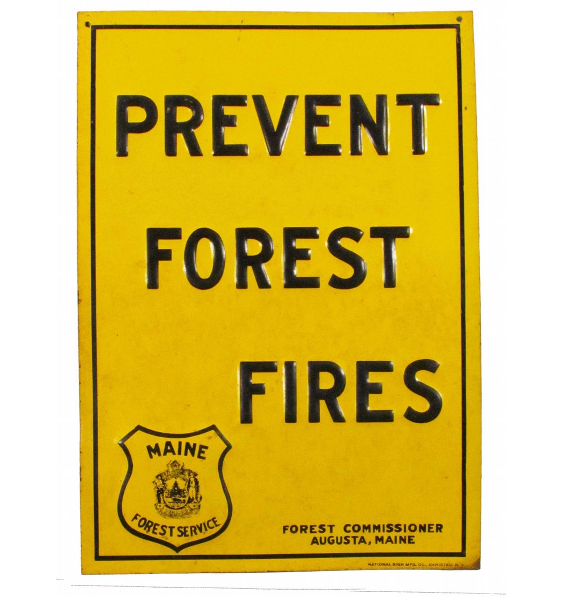 Prevent Forest Fires Embossed Tin Sign. Maine Forest Service. Good condition. 9 3/4 X 14 inches.