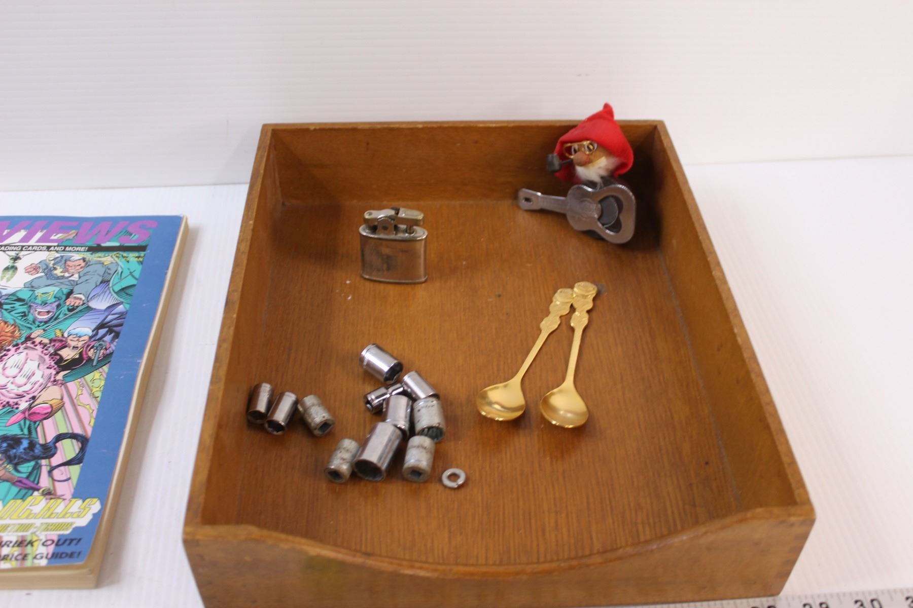 Previews Comicbook & Trading Cards magazine (1992) & Wood Tray w/ Lighter, (2) Display Spoons, Imperial & Metric Sockets (Assorted)