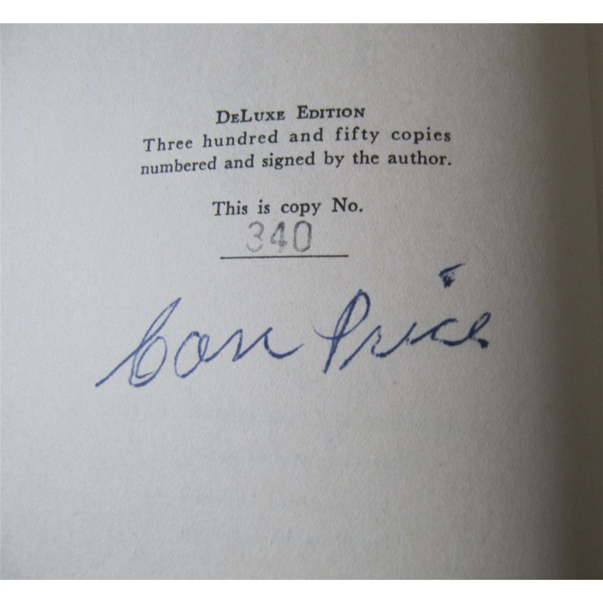 Price, Con, Trails I Rode, 1947 ltd. edition, #340 of 350, signed by Con Price, leather cover, good to very good condition, previous owner's name, date and inscription on the half title page, illustrated by CMR; CMR and Price were ranching partners, as described in the book