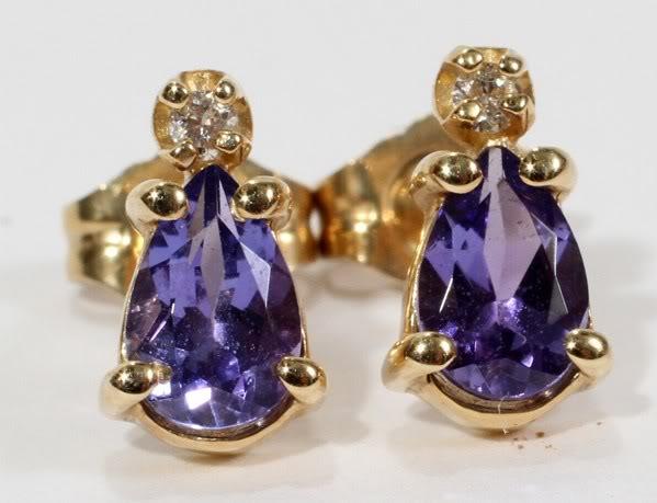 Priceless TANZANITE AND DIAMOND EARRINGS, perfectly matched and rare. Vintage. H 3/8"; 1 gram