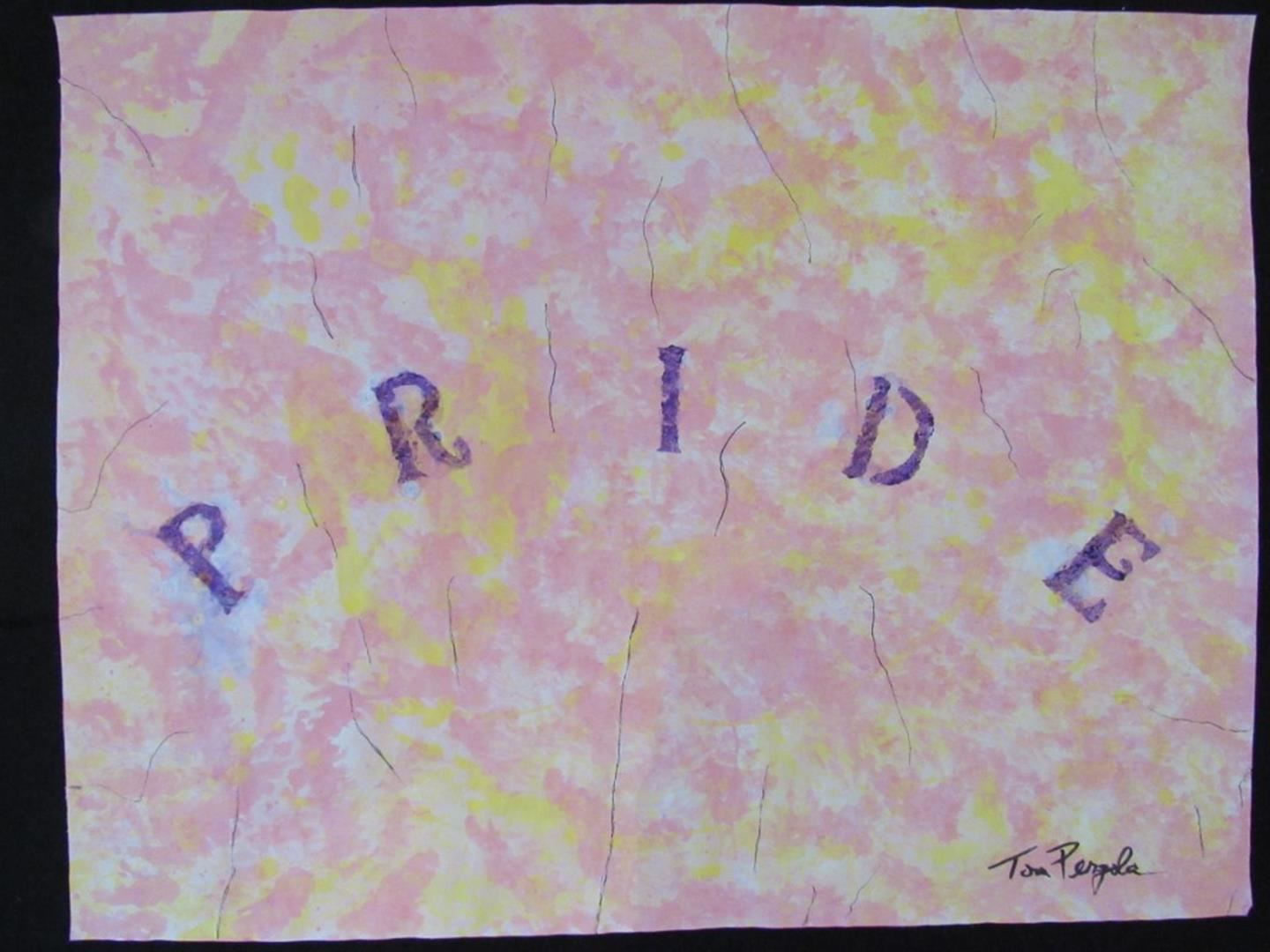 A colorful abstract acrylic painting by California artist Tom Pergola. 17.7/8x23.3/8" on irregular acid-free art paper, with COA.