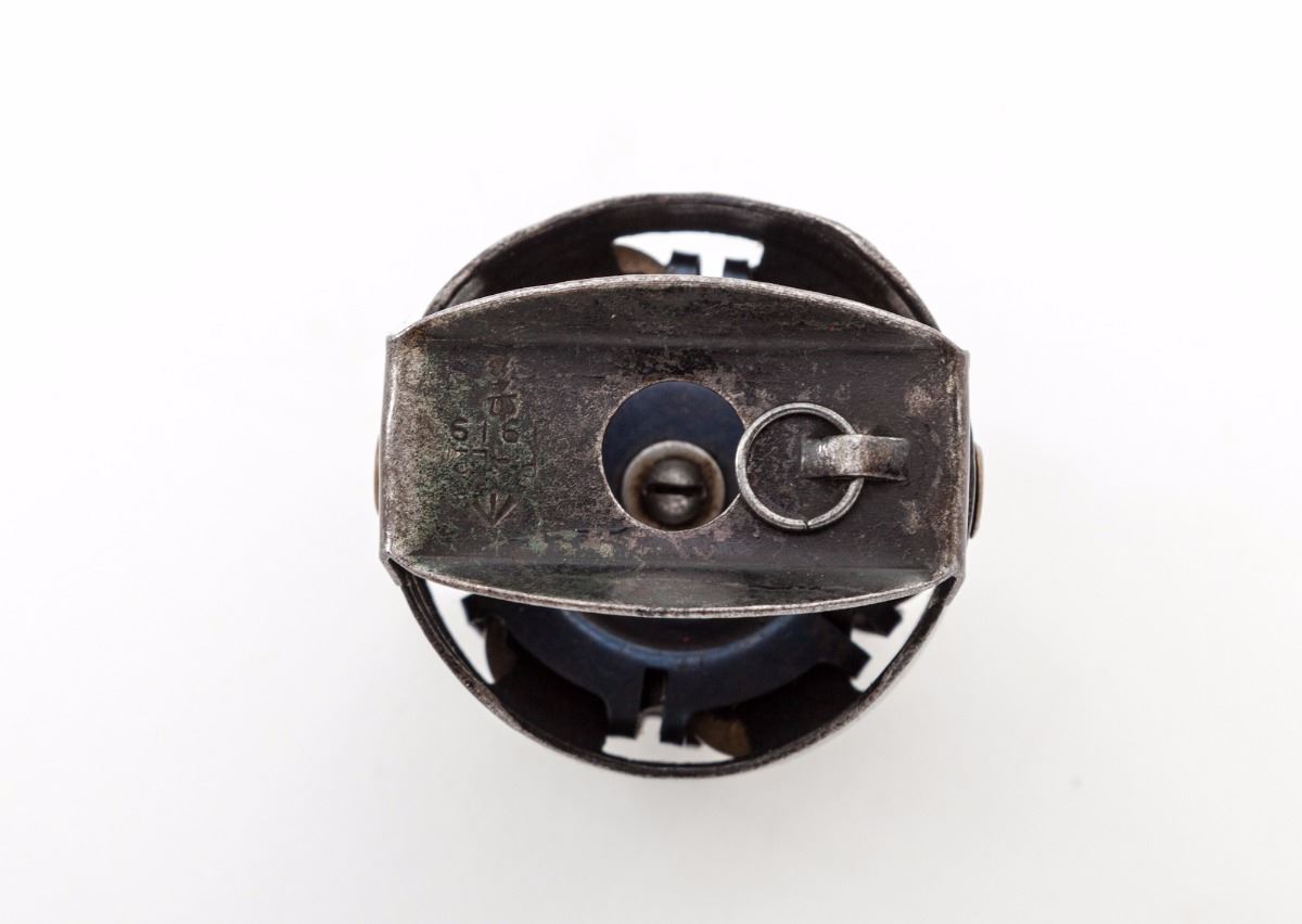 Prideaux Speedloader for Webley Fosbery Semi-Automatic Revolver, the rarest Fosbery accessory. This example is dated 1919 with Birmingham proofs and broad arrow markings. Condition is excellent with some thinning to finish and minor toning. Small lanyard ring is present. Est.: $800-$1,200. (Antique)
