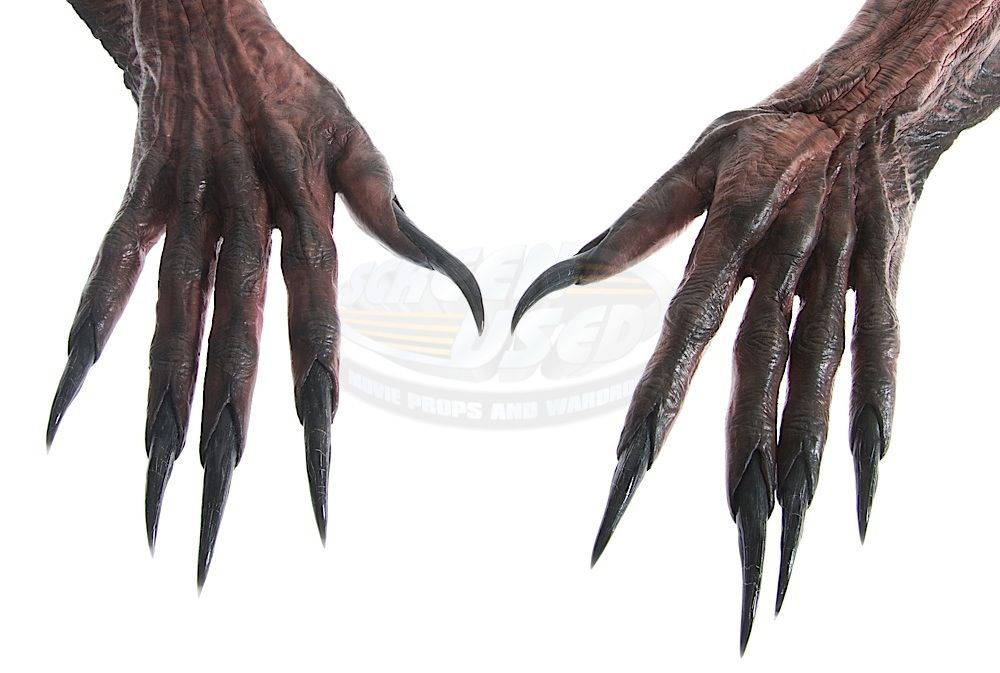 (Screen Gems, 2011) This pair of costume FX claws, hands and forearms were custom-made by the production for use in close-up shots of the Queen Vampire cutting into her left arm, allowing blood to flow from her arm. These are the effects gloves with the blood pumping syringe attached to be operated by a stage hand during filming. The gloves are made of foam latex with resin claws attached, each glove measures 25" in length.