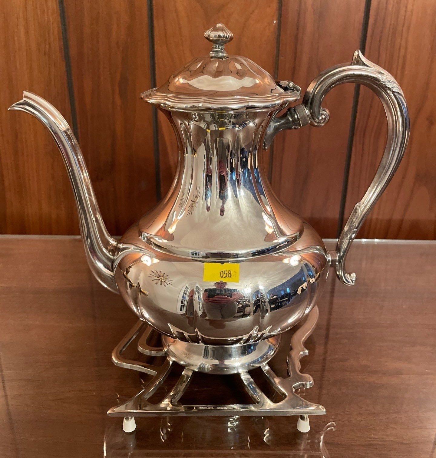Prim Rose Silver Plated Tea Pot With Prim Rose Trivet 8H