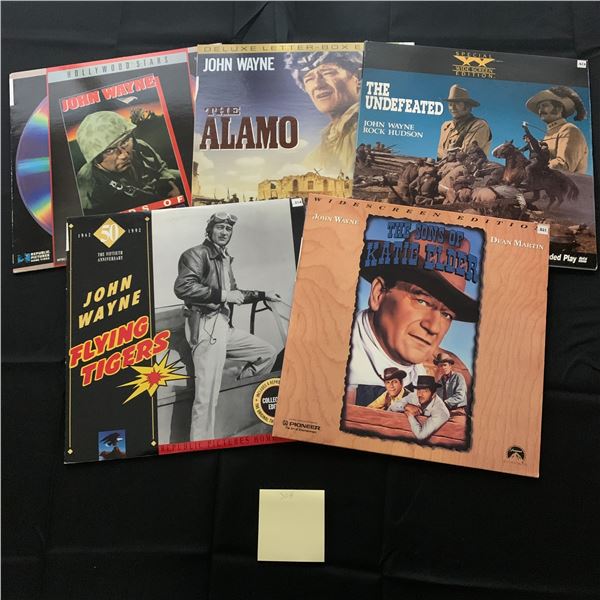 Lot of John Wayne Laser Discs. Includes, Flying Tigers, The Sons of Katie Elder, The Undefeated, The Alamo, and Sands of Iwo Jima. We are a veteran ow
