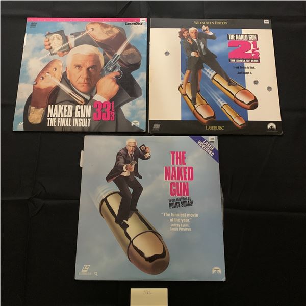 The Naked Gun 1, 2 1/2, and 3 1/3 Laser Discs. We are a veteran owned company. Please look at the pictures carefully to determine what you believe th