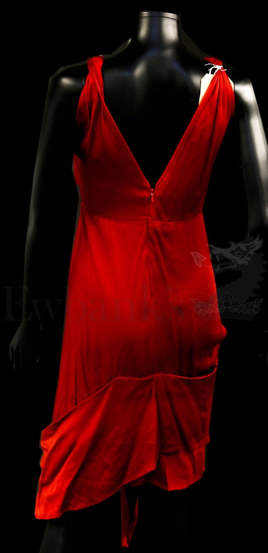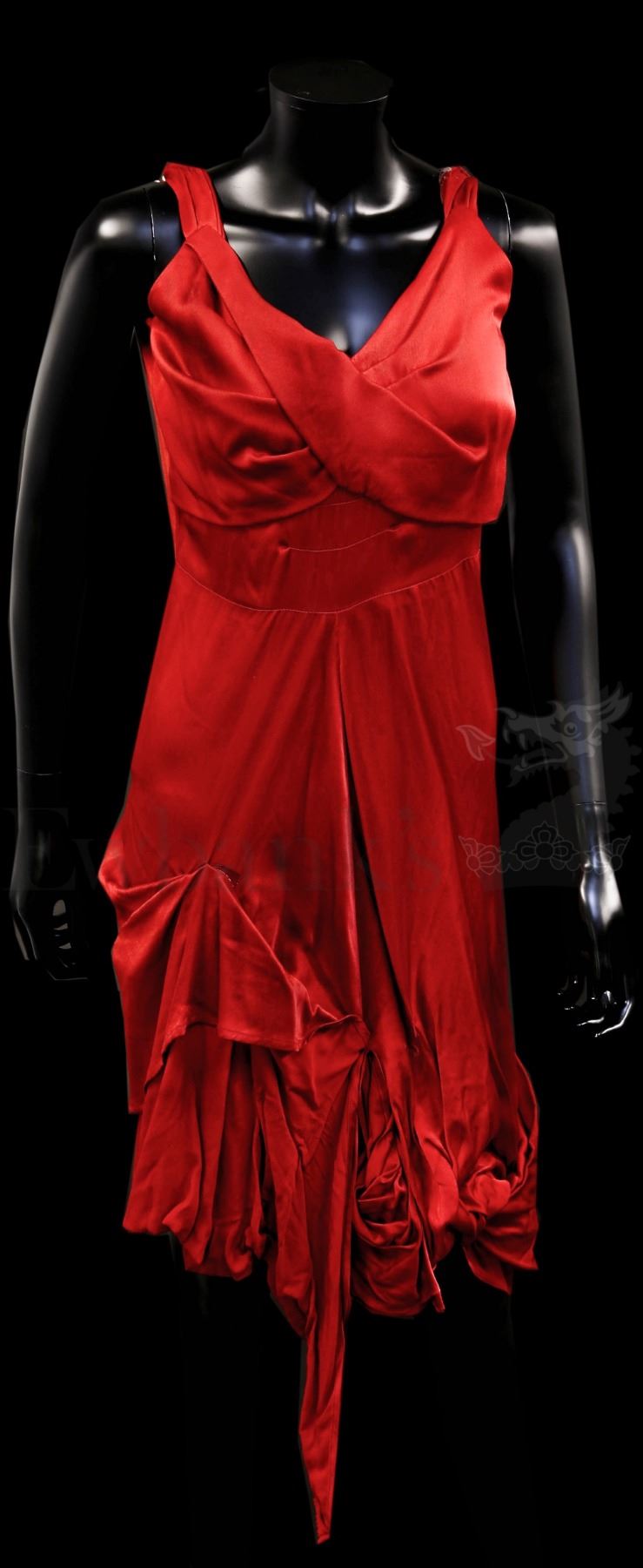 † Primeval (2009) 'Sarah Page', portrayed by Laila Rouass 1930's style red Dress worn by her in season three, episode six. The red dress was bespoke made for the character and is indicated as being 'stage 3 pre-bird explosion' on it's accompanying original Wardrobe label, which refers to it's exact use within the storyline. Please note that VAT is payable on top of the hammer price at 20% in addition to standard buyers premium inc. VAT for this lot.