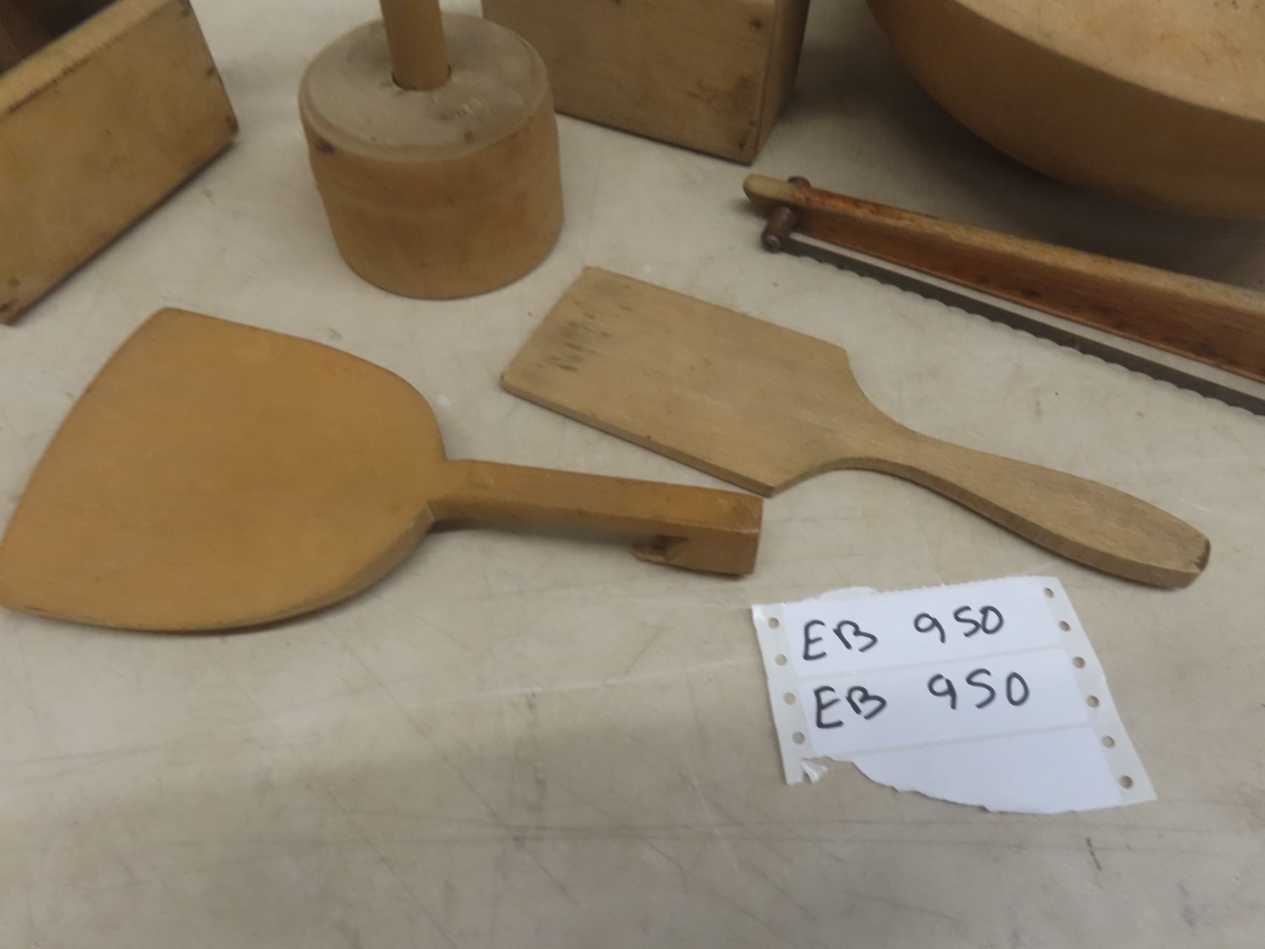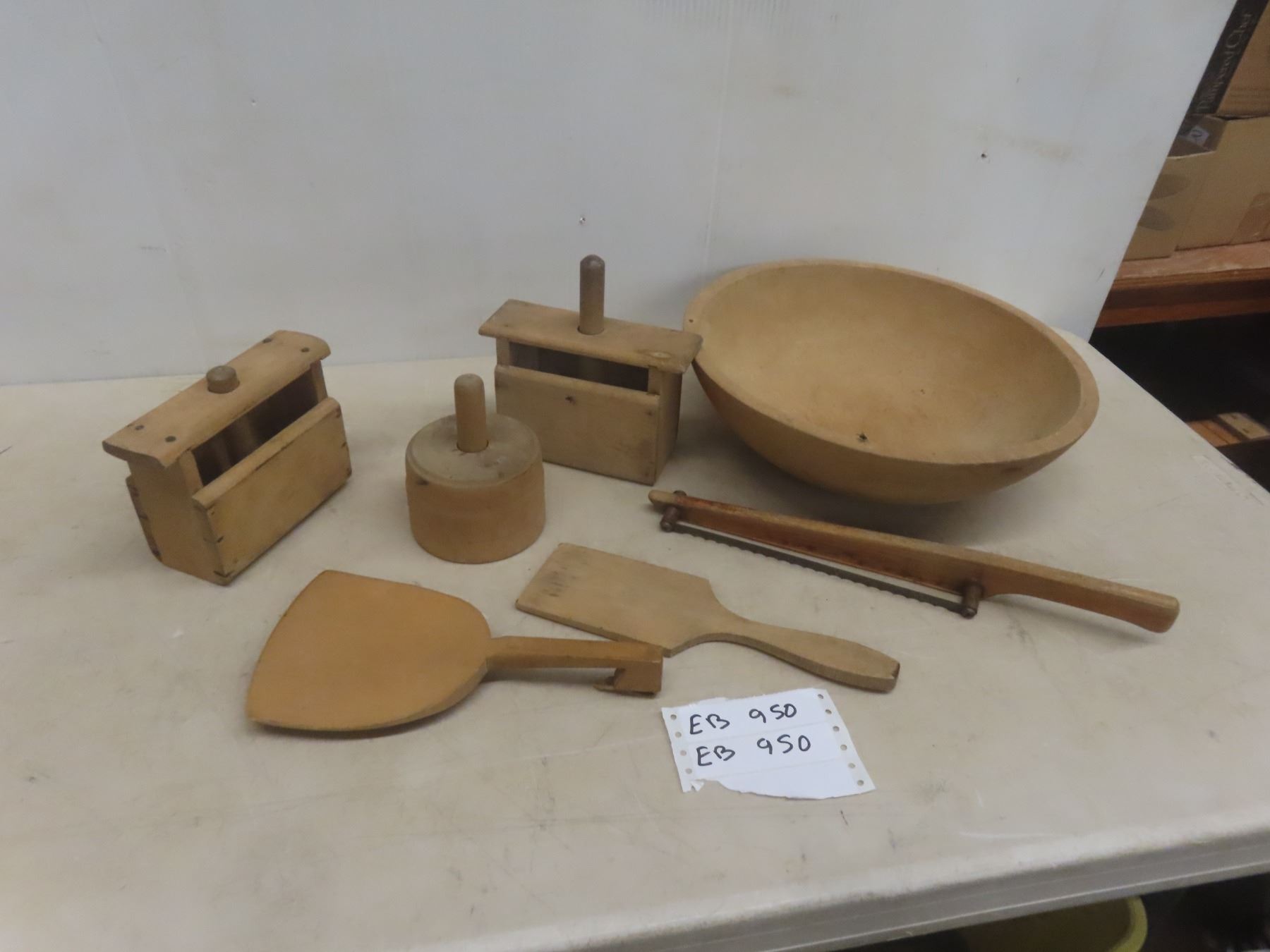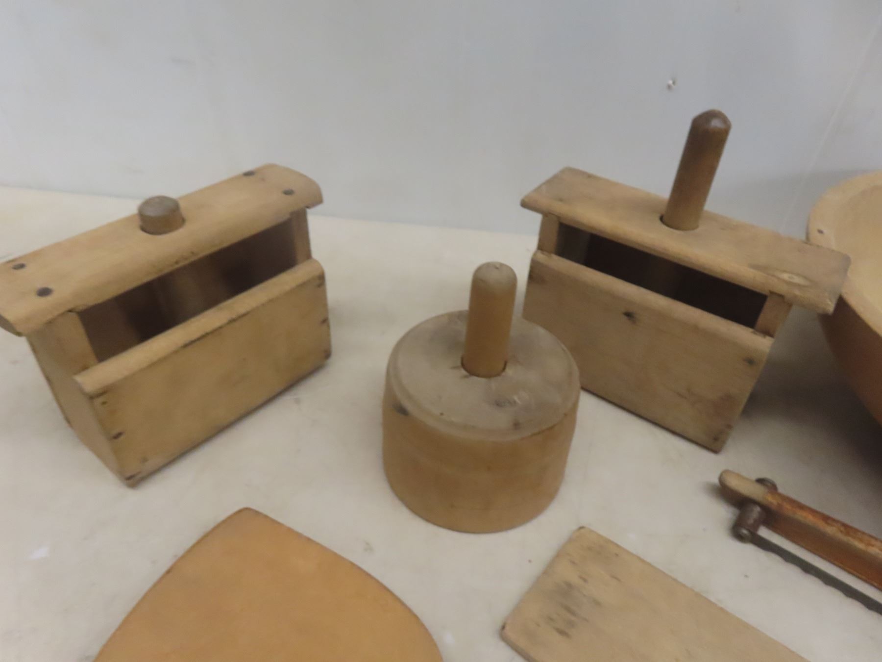 Primitive 3 Butter Molds , 2 Paddles, Bread Knife +