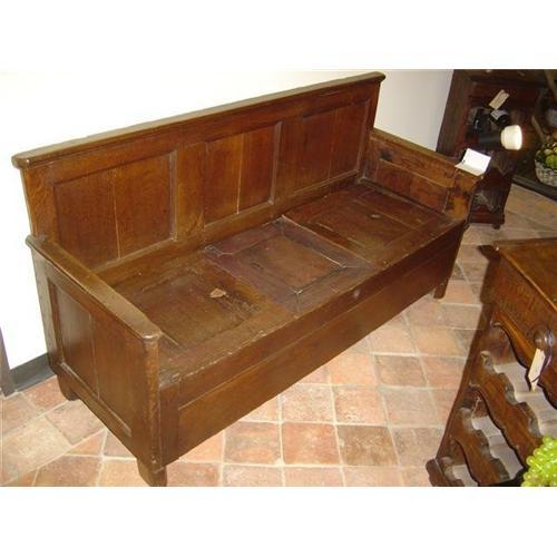 This is antique primitive bench with storage underneath the seat. It is in good condition, except for some scratching to the surface. However, this is more than expected, due to its age--circa 1800.