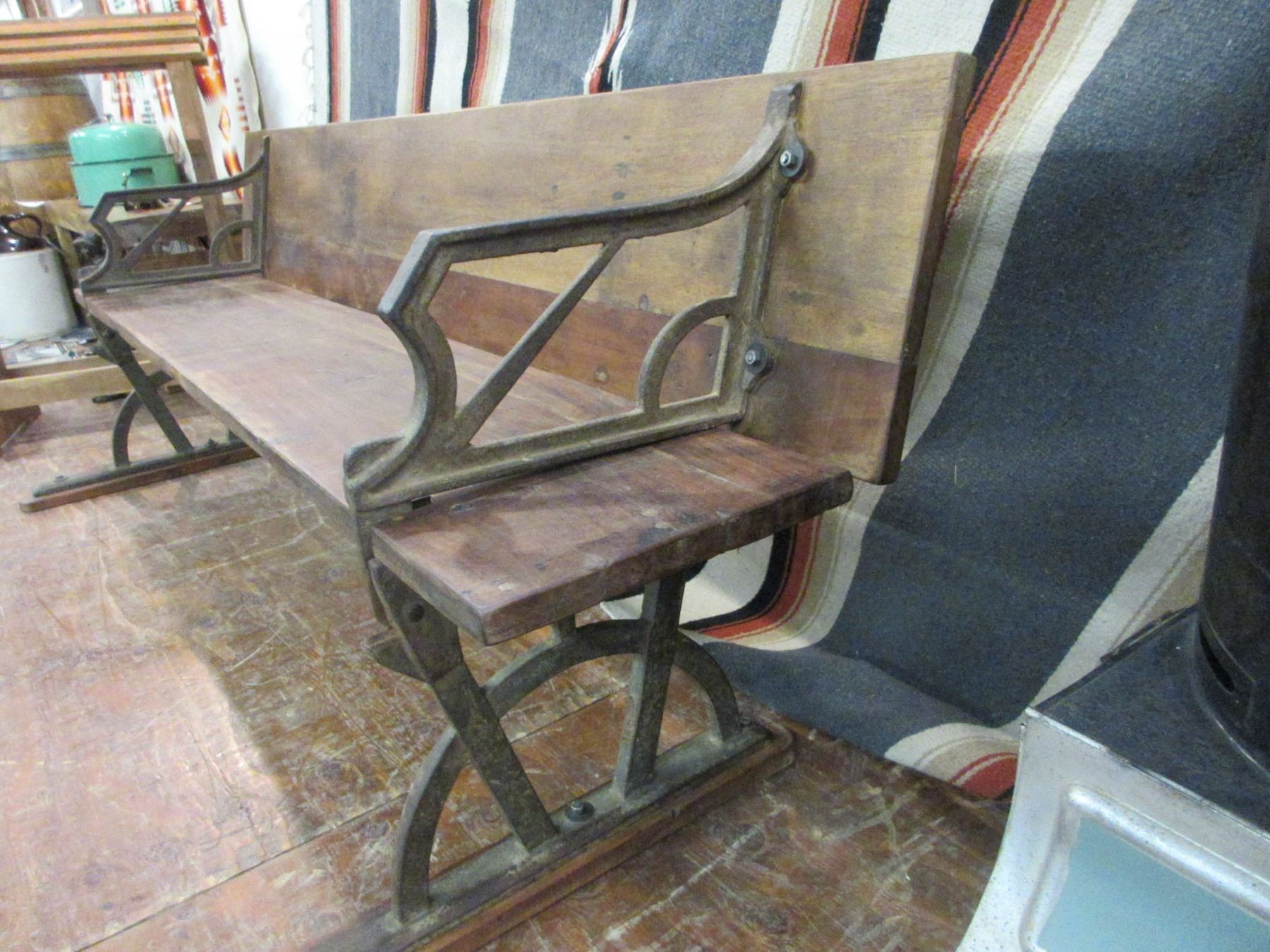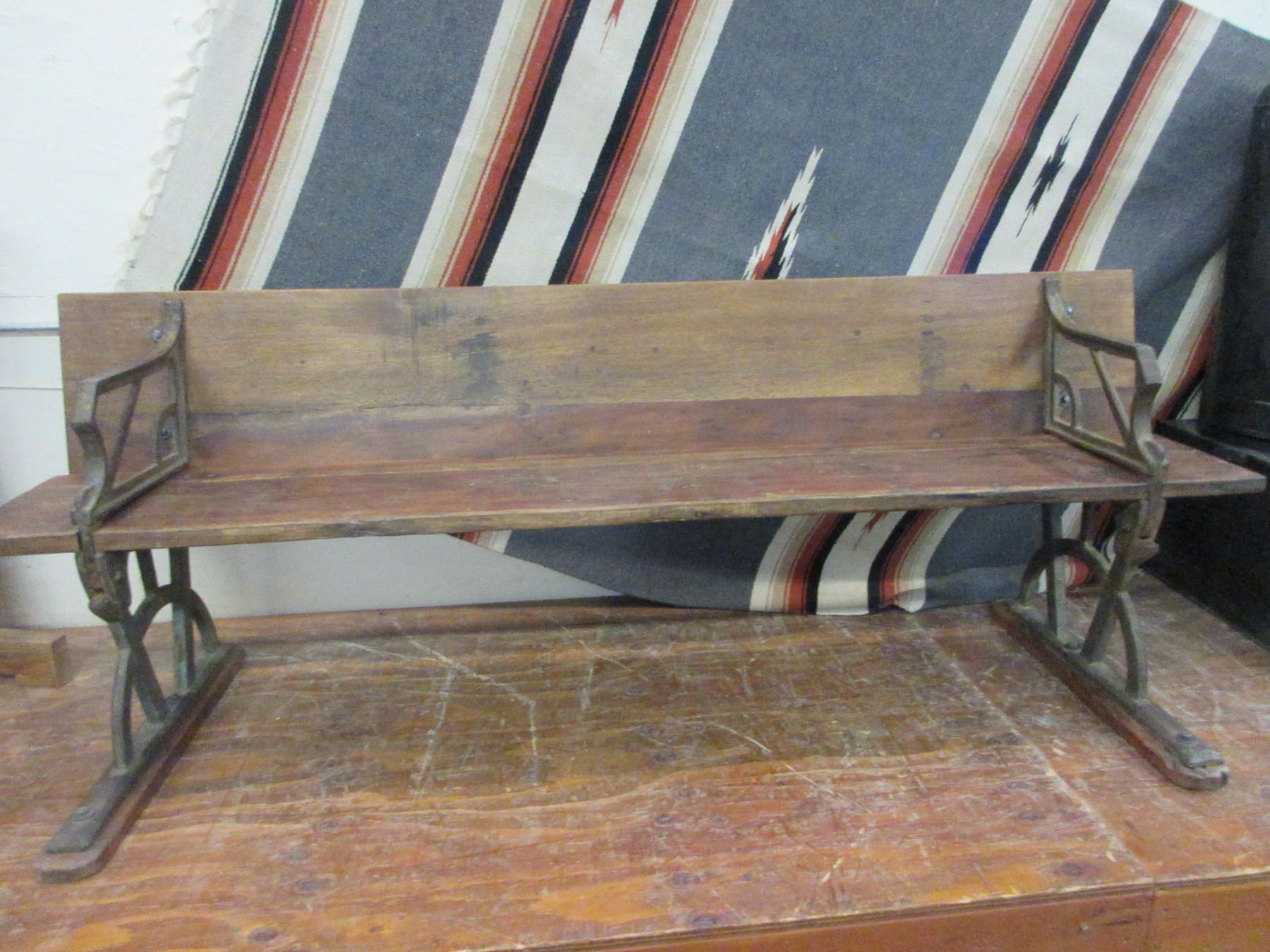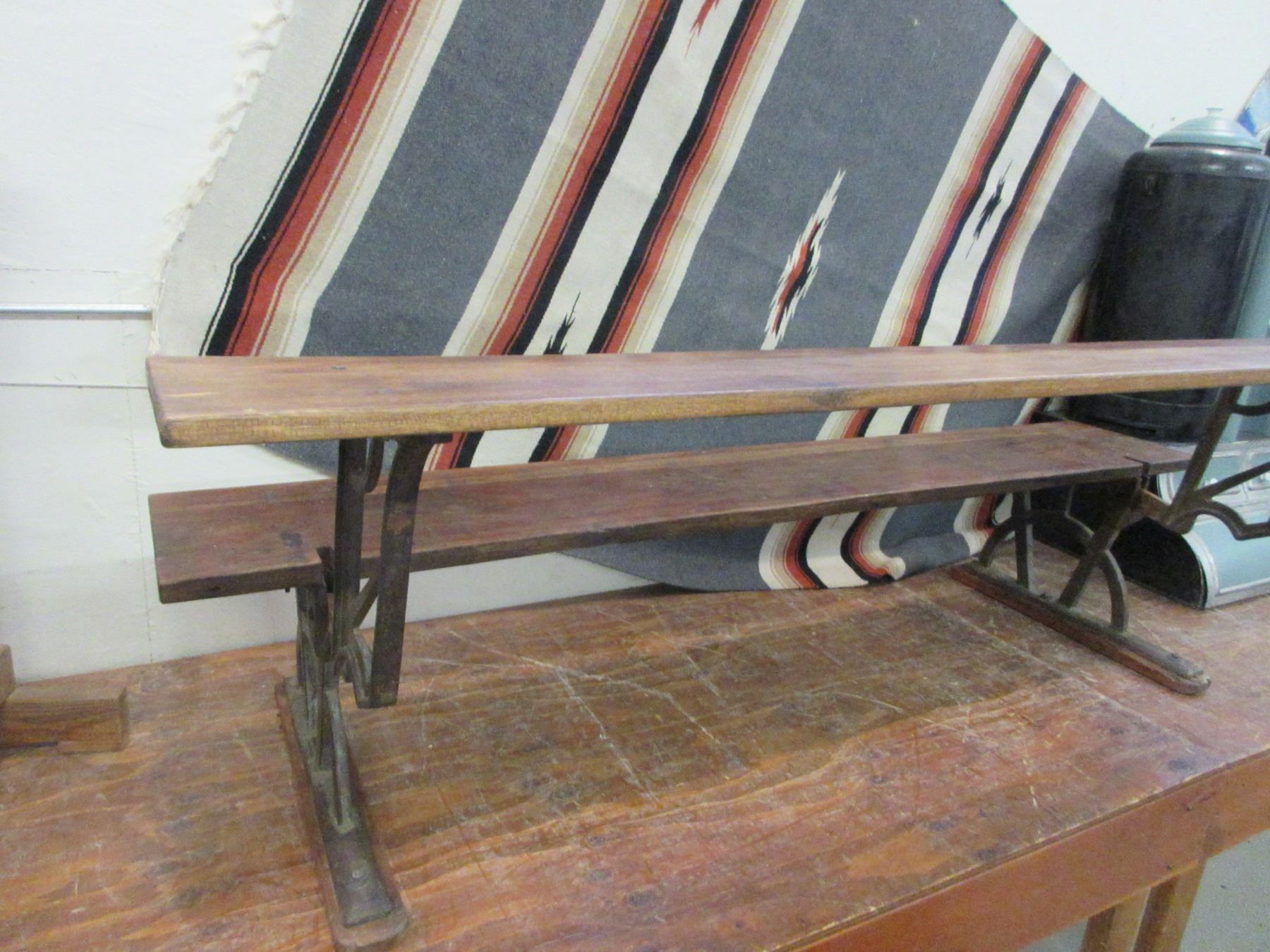 Primitive Bench/Table Combo With Wrought Iron Legs- 73"L X 12"D