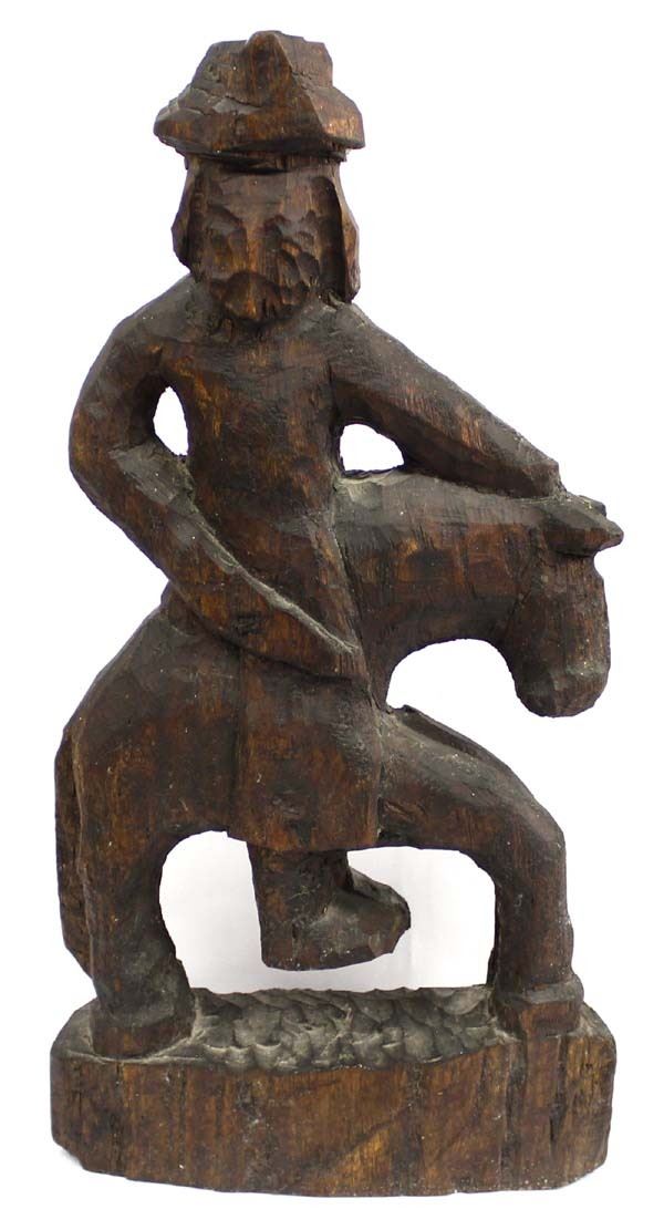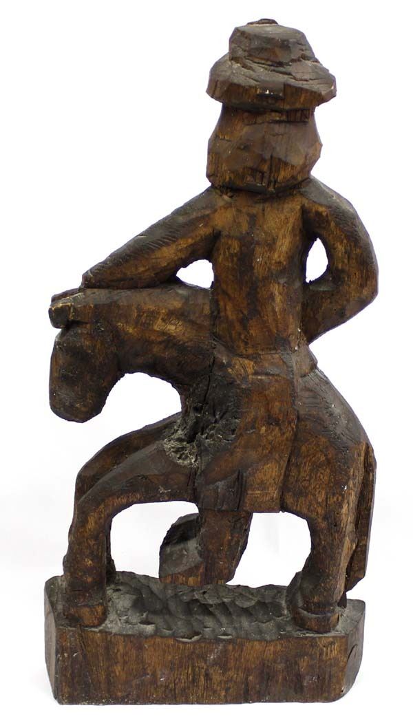 Primitive Carved Wood Don Quijote on Domkey Statue, measures 10'' x 19'', age and origin unknown