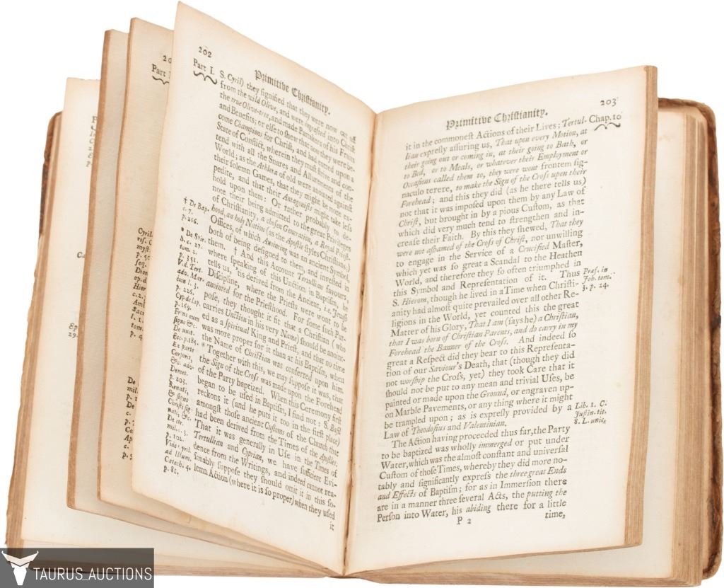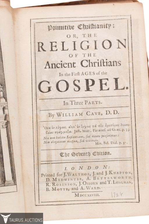Item/Description: Antique book: Primitive Christianity, or, The religion of the ancient Christians in the first ages of the Gospel in three parts / by William Cave. Seventh Edition, London MDCCXXVIII (1728).