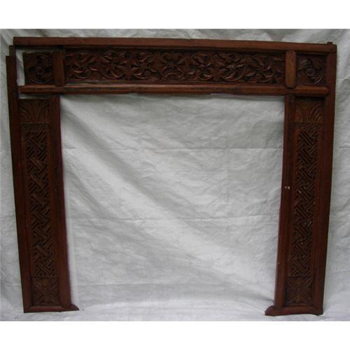 In terms of inventiveness, this one definitely qualifies. This surround was actually pieced together with many different panels and pieces of framing pieces. Each of the carved panels fits into its own niche, secured with very primitive and ancient nails. the side pieces joint to the cross piece by means of tabs that are inserted into slots that, when in place, cause the entire creation to seem as if it is one solid piece.