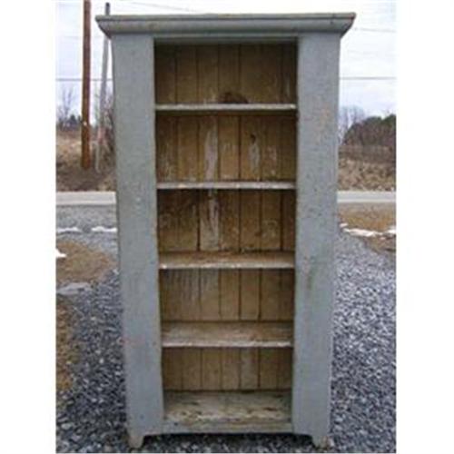 Early primitive jelly cabinet - grey painted finish. this came from a farm auction in the adirondacks. piece is in very good condition with plenty of character..the front door is missing however that does not take away from the charm of the early primitive piece.
