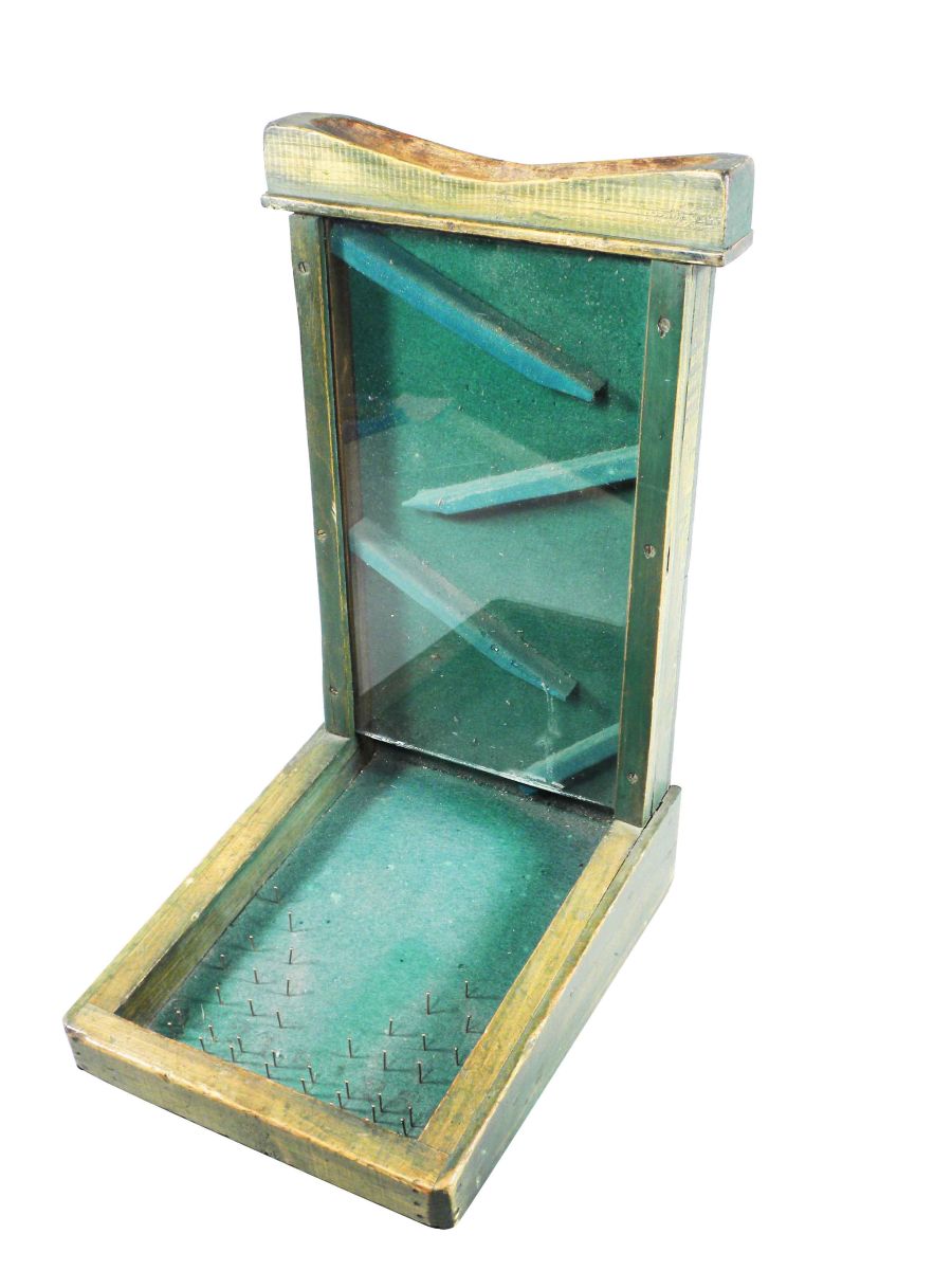 Primitive Marble Drop Trade Stimulator. Walnut and glass, unmarked. 12 X 20 1/2 X 13 1/2 inches.
