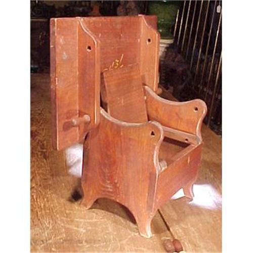 </font></strong>Here is a grand little primitive chair table or hutch table. It is all made of birch ? it has a lift table top as you can see and it also has a lift top for the seat inside. The entire chair table is very solid the construction is pegged construction. With the top having dove tail. I suspect that this is either a child?s furniture item or a salesman sample made in the mid to late 19th century. The surface is just how we found it ? a little bit scrubbed a little bit dry. It is a very cute and stylish little primitive piece. It measures 18?w x 12 7/8?h x 12 3/8? deep.