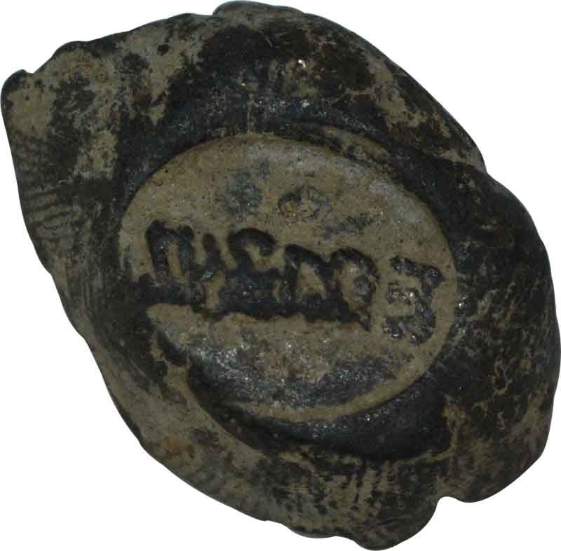 Primitive Money, Post Gupta Sealing, 600AD, Terracotta, Gupta Brahmi legend in the Center in an oval reading, Jayakula, 2.05 g, 22.52 mm, about extremely fine, Scarce.