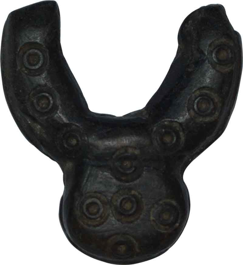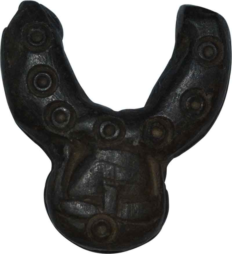 Ujjaini region, 600 BC, Obv: profile bust facing with circular symbols, Rev: circular symbols, Used as an ornament and perhaps used for barter as