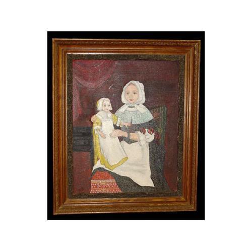 <tr><td>Title:Primitive Mother Daughter Oil Painting Oak</td></tr>