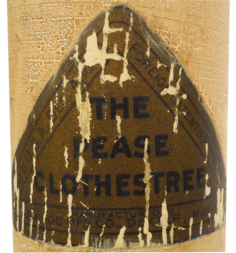 Primitive Pease Clothes Tree drying rack mfgd in Dexter, MA, wooden 3-tier rack w/orig white paint & decal, 1 broken arm & 1 missing, o/wise VG orig cond, 69"H x 34"Dia.