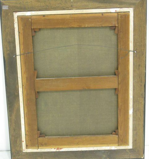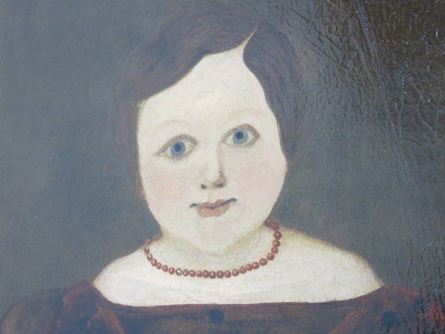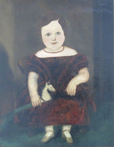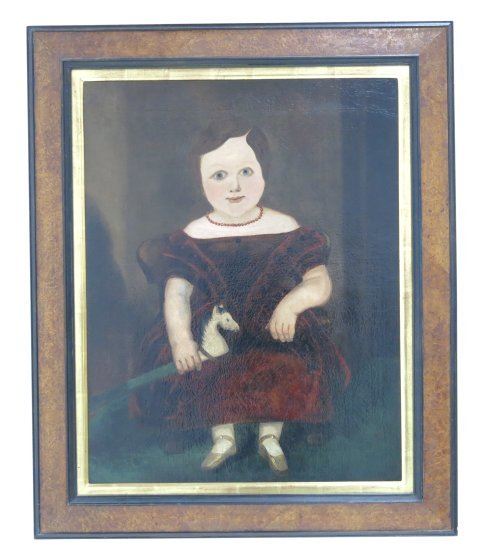 Oil on canvas. Framed. 19th century American School. Folk art. Approx. 30" x 24" unframed, 38" x 32" framed. Relined.