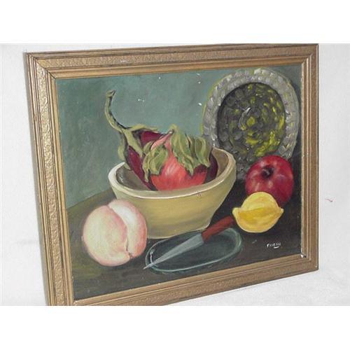 <table width="100%" border="0" cellspacing="0" cellpadding="4"><tr><td><em> </em></td></tr><tr> <td width="100%"> A 20th century oil painting on artists board, 20 3/4" X 17" (framed size),a still life in the primitive style. Nicely done, older frame has been painted gold. Colors are bright and will add a decorative touch to your interior. </td></tr><tr> <td> </td></tr><tr> <td>Reference #: 4771_89</td></tr><tr><td>Condition:good</td></tr><tr><td>Year:early 20th century</td></tr><tr><td>Title:Primitive Style Painting SKU 4771</td></tr><tr><td>Location:Fort Lauderdale, Florida</td></tr></table>