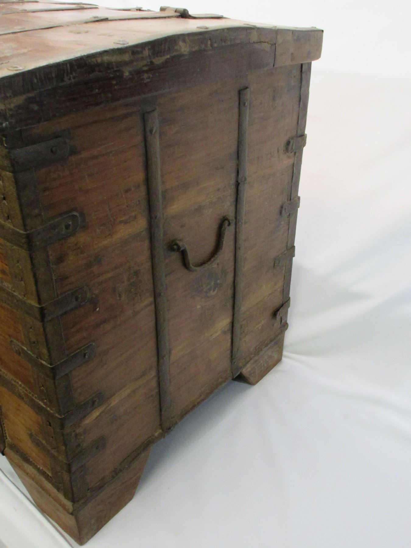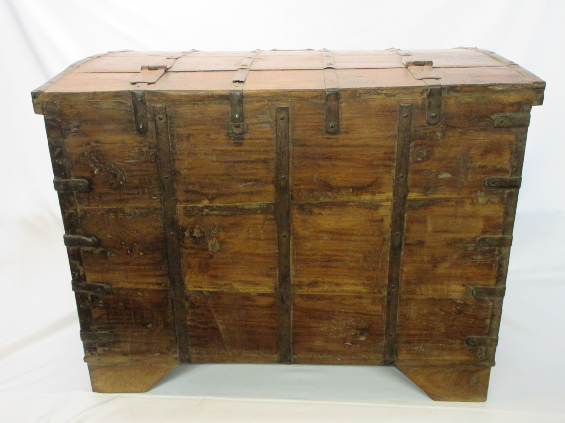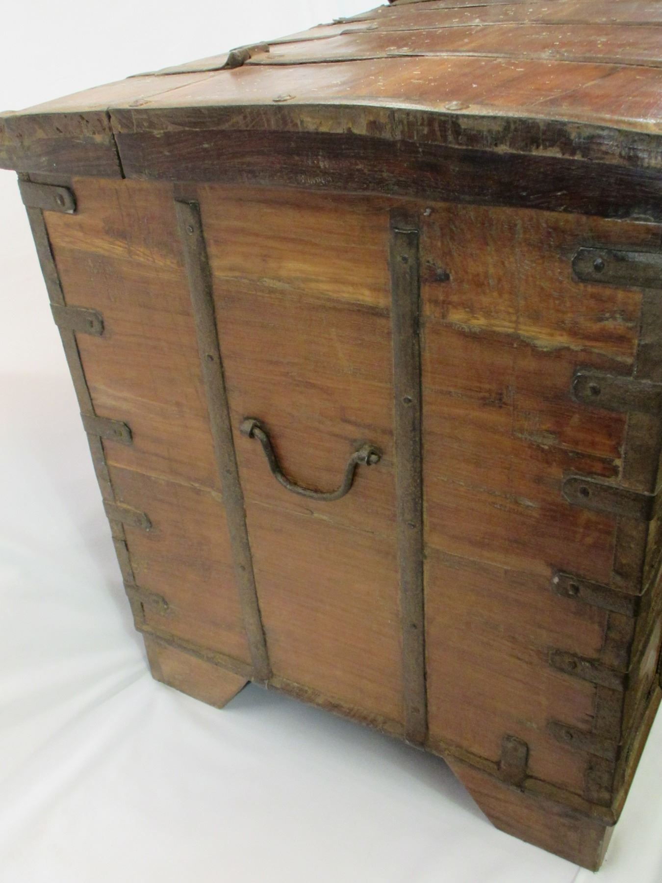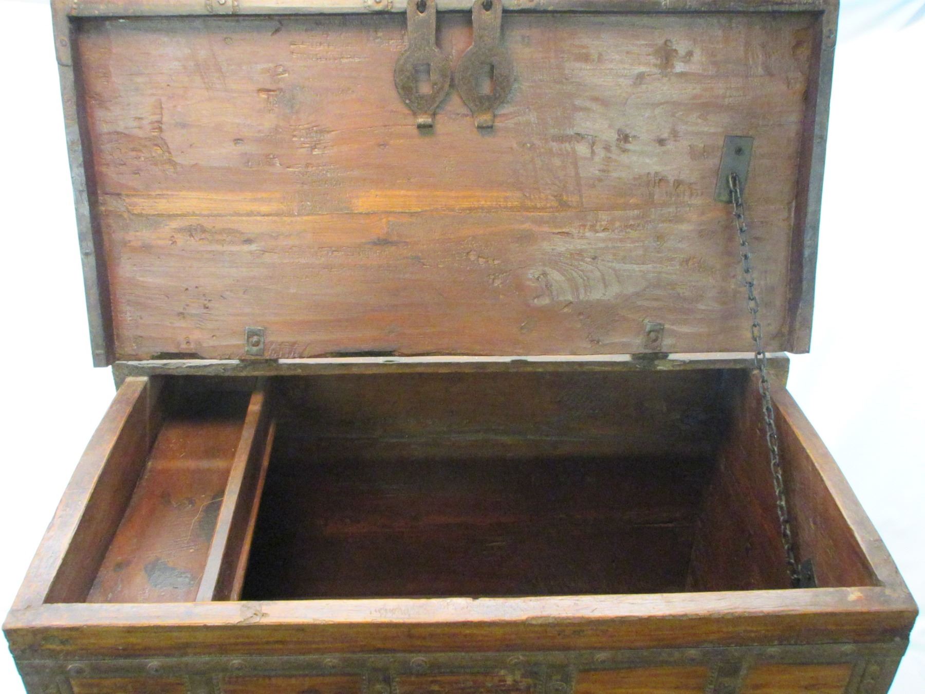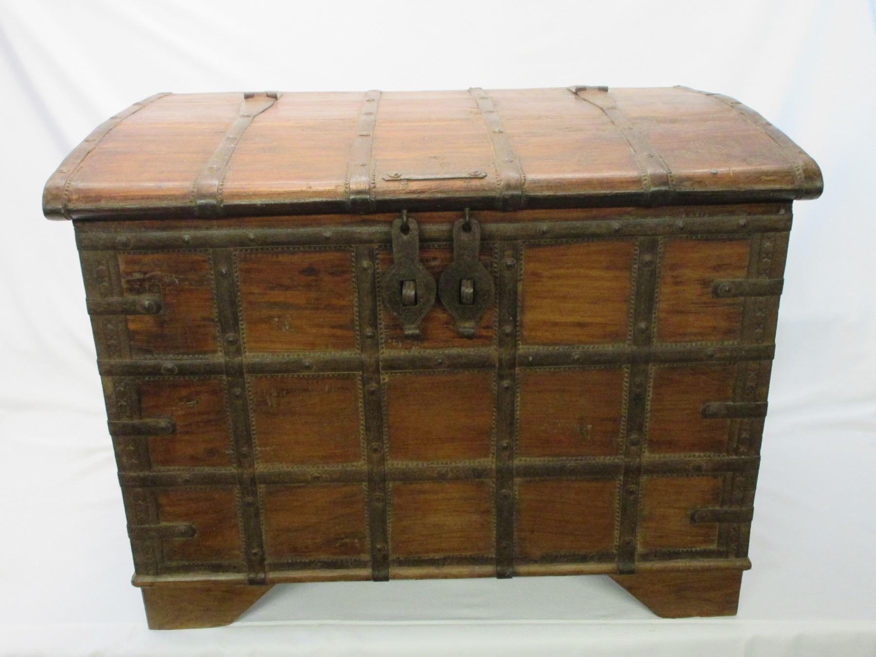 Primitive Wood and Metal Trunk- Double Clasp- Tray Inside- 31"L X 23"H X 21"D