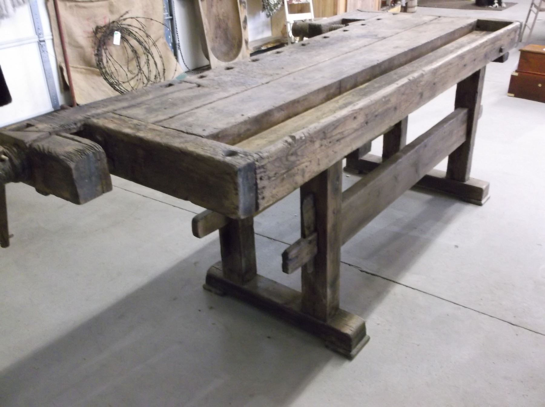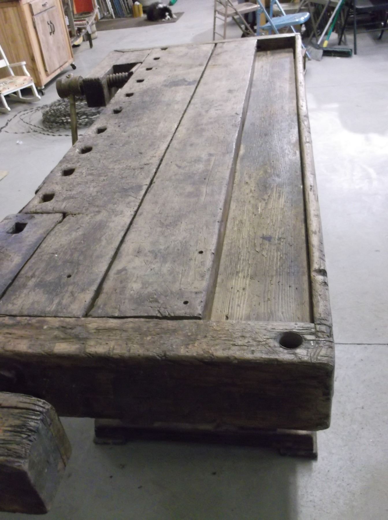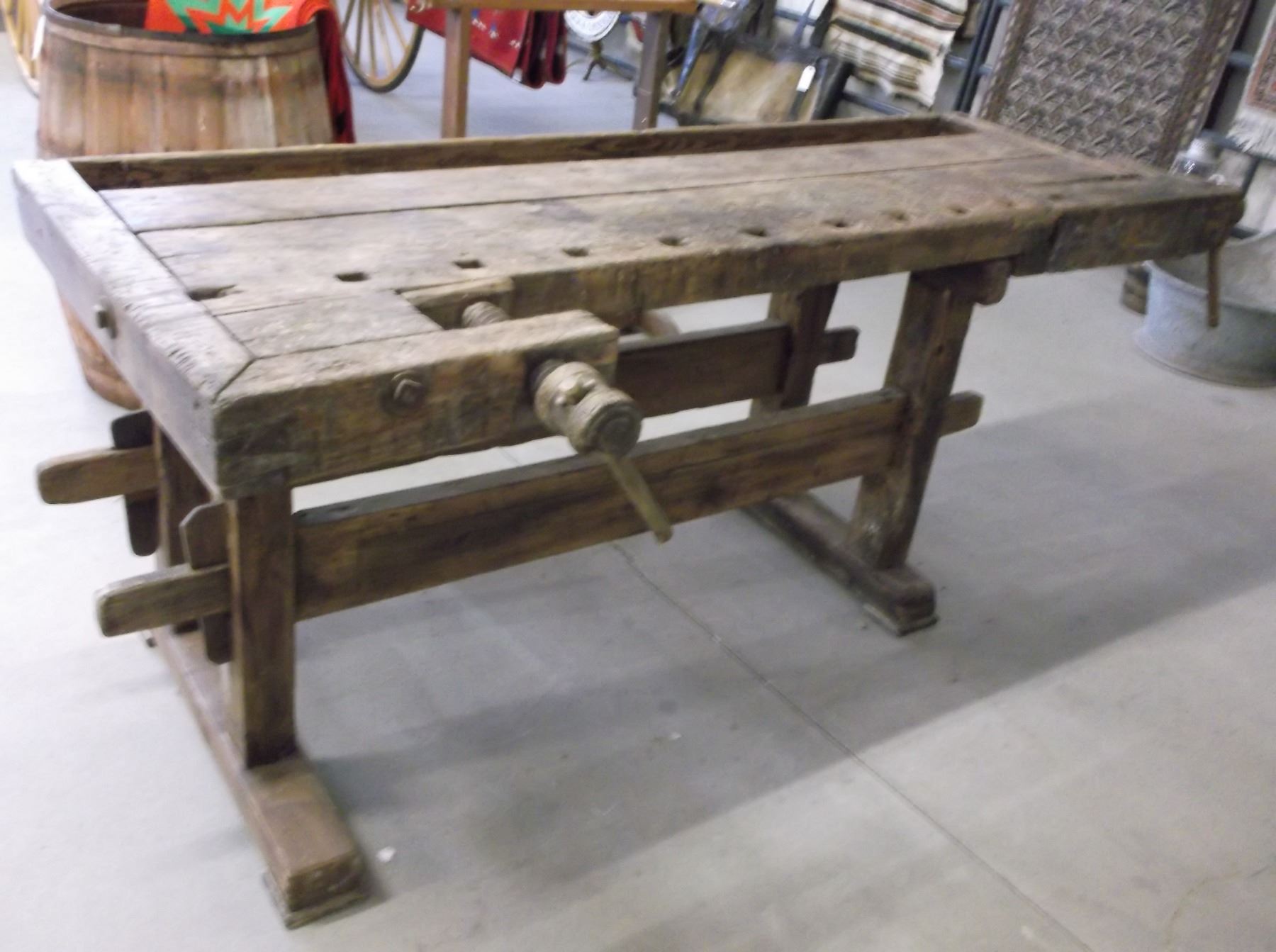 Primitive Work Bench- 2 Wooden Vices- 80"L X 32.5"W X 32.5"H