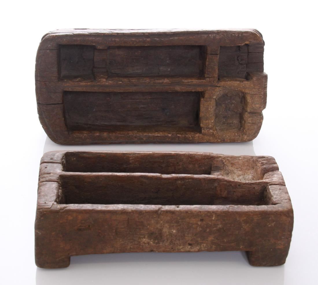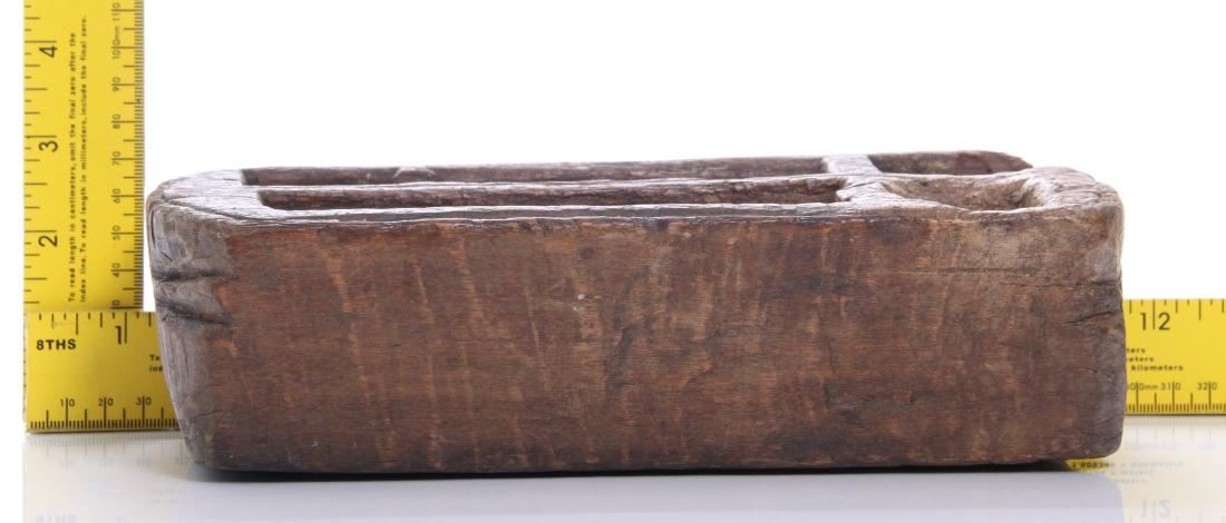 Primitive / antique wood compartment tray. Possibly used for food, mixing pigments, etc. Estimated more than 100 yrs old. Indian art consists of a variety of forms, including pottery, sculpture, paintings, and textiles. Geographically, it spans the entire Indian subcontinent, including what is now India, Pakistan and Bangladesh. A strong sense of design is characteristic of Indian art and can be observed in its modern and traditional forms. The origin of Indian art can be traced to pre-historic Hominid settlements in the 3rd millennium BC. On its way to modern times, Indian art has had cultural influences such as Indus Valley and Hellenistic, as well as religious influences such as Hinduism, Buddhism, Jainism and Islam. In spite of this complex mixture of religious traditions, generally the prevailing artistic style at any time and place has been shared by the major religious groups. In historic art, sculpture in stone and metal, mainly religious, has survived the Indian climate better than other media, and provides most of the best remains. Many of the most important ancient finds that are not in carved stone come from surrounding, drier regions rather than India itself. (Wikipedia) Size: See Ruler Photo. (Photos Represent The Condition Of The Lot.)