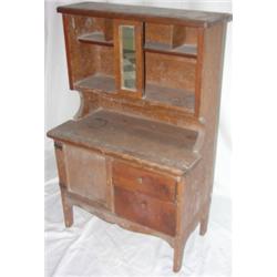 Primitive child's step back cupboard. Cupboard has a replaced back. Measures 35 1/2" tall, 23" wide, and 11" deep.