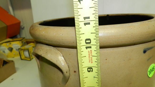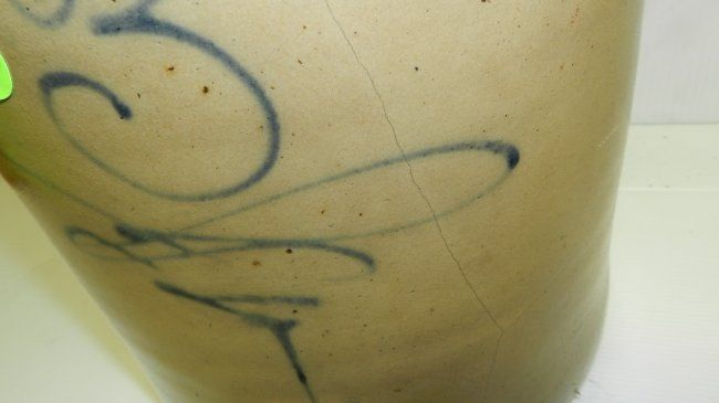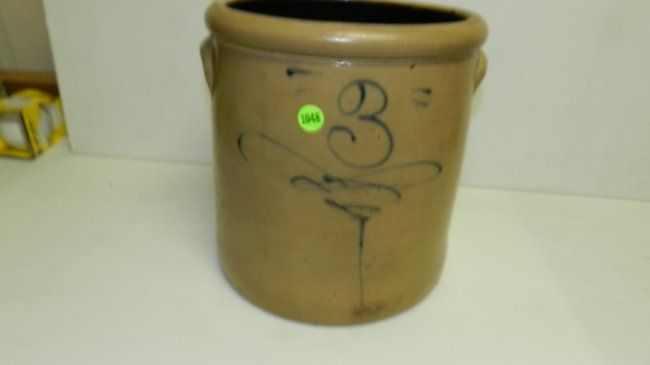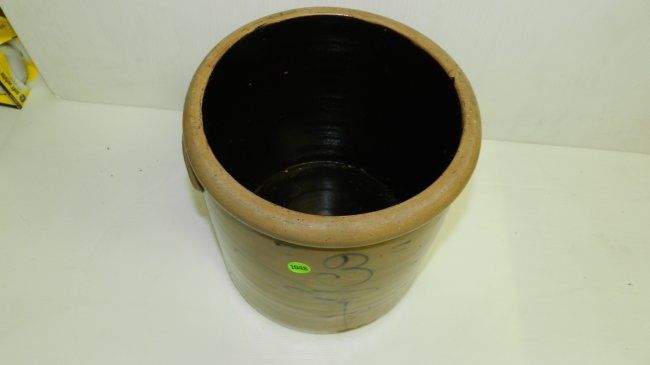 Primitive crock, 3 gallon with swirl, flake on rim