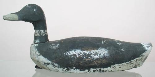 Primitive example of a brant decoy used at the famous Pequaw Honk Gunning Club at Quick Sand Pond in Westport, MA. Painted eyes and old in use paint. Neck check. Bottom reads "Property of Mt Hope Farms Museum". This was the property of the Heffenreffer Brewery Family in Rhode Island that was made into a museum. (decoy)