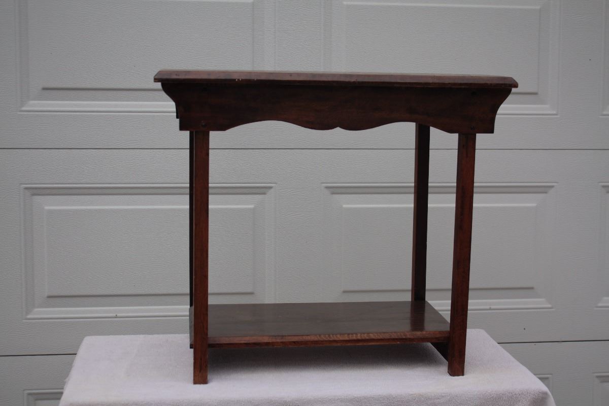 A simple hall table with a shelf on the bottom of it