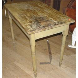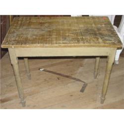 Primitive original painted work table with two board top. Retains most of its original paint on top and base. Measures 20 1/2" tall, 35 3/4" long, and 22" wide.