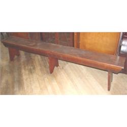 Primitive porch bench. Measures 91 1/2" long, 19" tall to top of back and seat measures 10 1/2" wide.