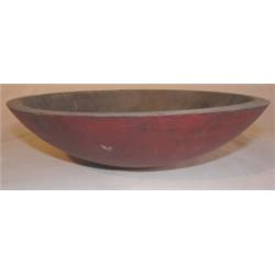 Primitive red painted dough bowl. Measures 9 1/2" x 10".