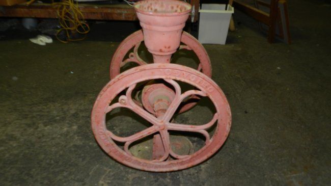 Primitive table top coffee grinder, as seen, yard art. SSR = SPECIAL SHIPPING REQUIRED