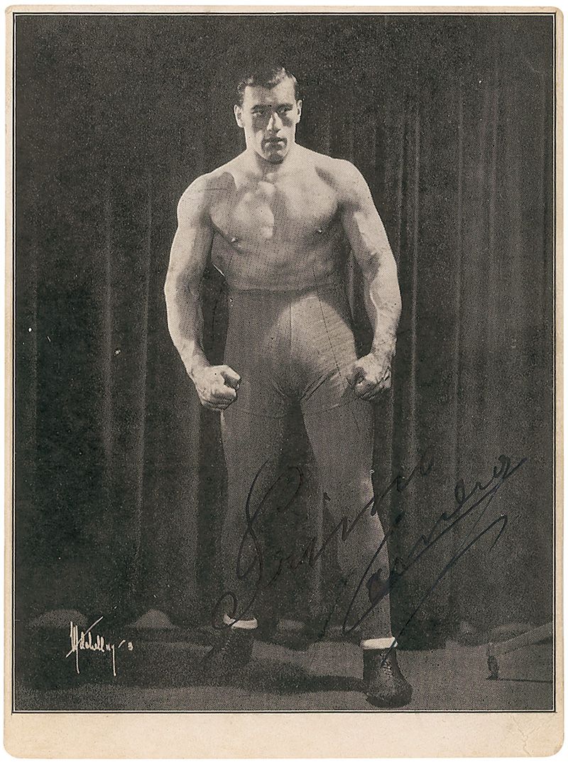 Scarce vintage matte-finish 3.75 x 5 photo of the heavyweight champion of the world, signed in black ink. In fine condition, with scattered marks and silvering, and some light contrast to signature.