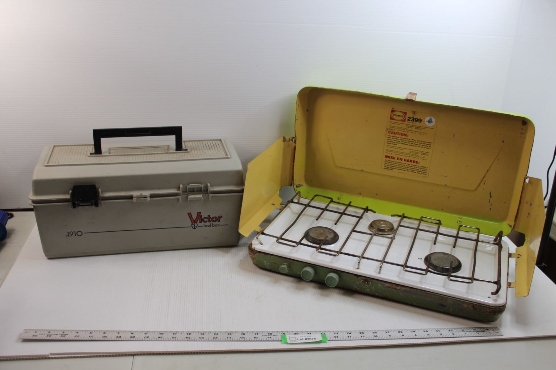 Primus Propane Camp Stove & Victor Plastic Tool Box - As is Condition