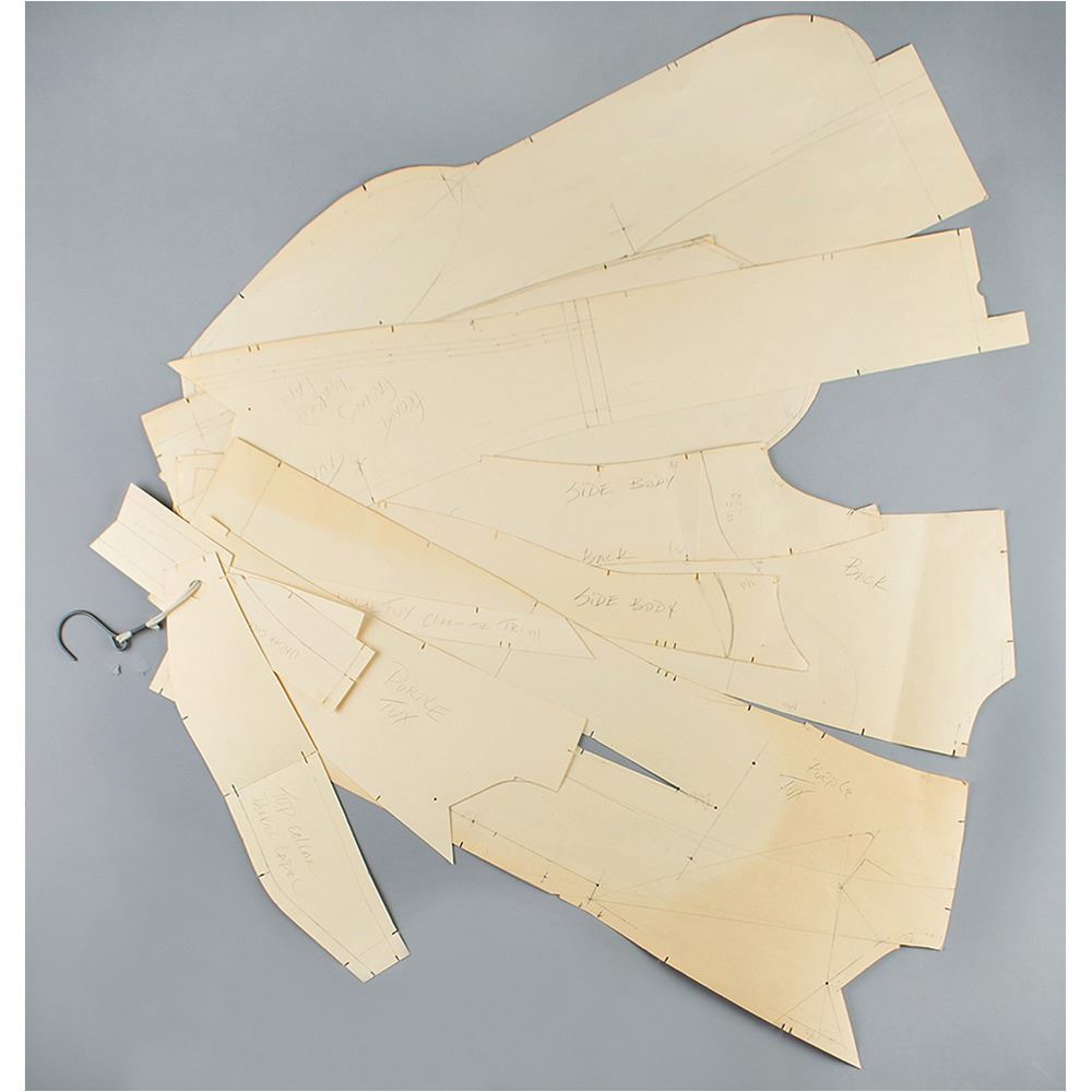 The collection of 32 garment patterns are for Prince’s back, side body, sleeves, collars, and fronts, with only the latter differing across the five suit designs—Hood used McGuan’s detailed CAD notations for button spacing, shoulder width to seams, and button holes. In overall fine condition. Accompanied by a Special Collector's Edition of People magazine, which contains an image of Prince wearing Hood's Oscar-night suit, and by Hood’s detailed letter of provenance, which reads, in part: “At the time of this fashion endeavor for Prince and Debbie, I had over 28 years of experience in superfine tailoring...The patterns I created here provide a definite direct blueprint to the possibility to construct any one of the 5 designs that Debbie created for Prince; [there’s] no doubt that he tried the suits on, looked in the mirror with each, and then he made his choice...Design #1 selected by Prince was the one that got him rave reviews as he presented the Oscar award for Best Original Song.â€