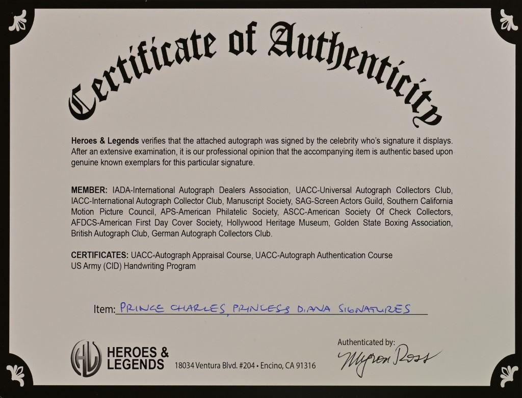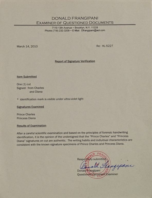 Prince Charles and Princess Diana signature cut. HL6068