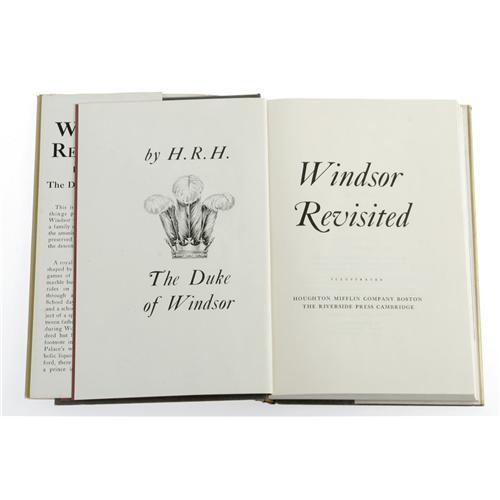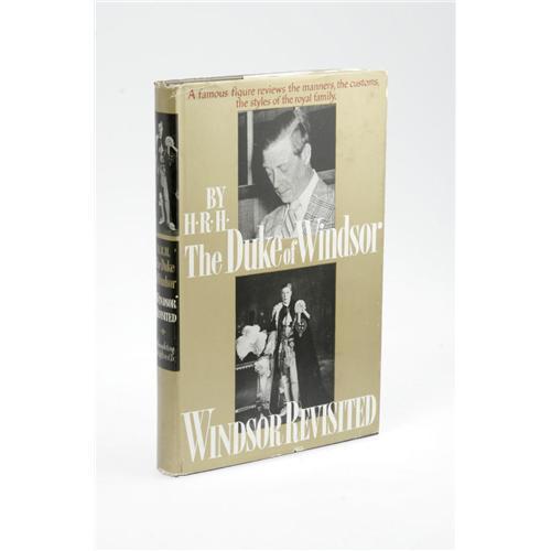 <B>Prince Edward, Duke of Windsor Signed Book: <I>Windsor Revisited</B></I></B></I> (Boston: Houghton Mifflin Company, 1960), second printing, 216 pages, fully illustrated, dark gray cloth boards with gilt title, 8vo (6.25" x 9.25"), dust jacket, signed "<I>Edward</B></I>" on a bookplate affixed to the front free endpaper. Edward (VIII) reigned as King of the United Kingdom from the death of his father George V, on January 20, 1936 until his own voluntary abduction on December 11, 1936, in order to marry American divorcee Wallis Simpson. In this book, he reviews the manners, the customs, and the styles of the royal family. Book in fine condition, dust jacket has just a bit of soiling and edge wear.