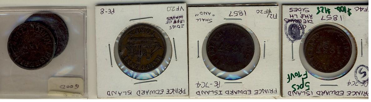 Prince Edward Island. Breton 917, CH PE-7c, includes different varieties. 5 pieces, grades vary from F to VF